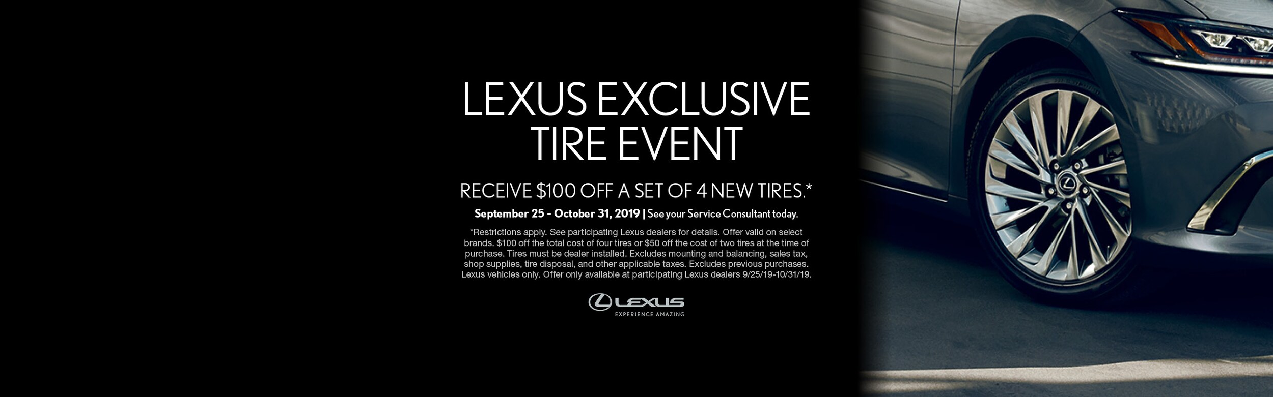$50 rebate on specific tires before 17" & $100 rebate on specific tires 18" and above