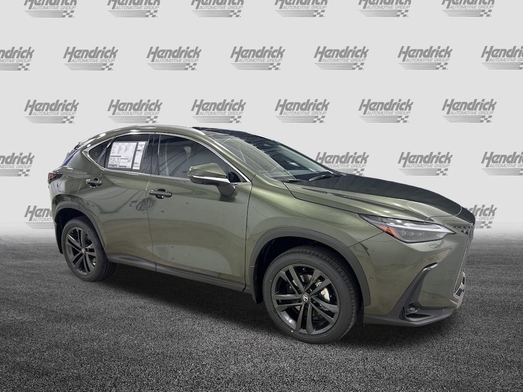 MARK LEVINSON 17-SPEAKER PUREPLAY SURROUND SOUND 1,800-watt, DIGITAL KEY & SMARTACCESS CARD KEY Requires Remote Connect subscription (3-year trial included, 4G network dependent), FRONT CROSS-TRAFFIC ALERT & LANE CHANGE ASSIST, ADVANCED PARK. Lexus NX 450h+ Luxury with NORI GREEN PEARL exterior and BLACK(TSUYASUMI) interior features a 4 Cylinder Engine with 304 HP at 6000 RPM*.
